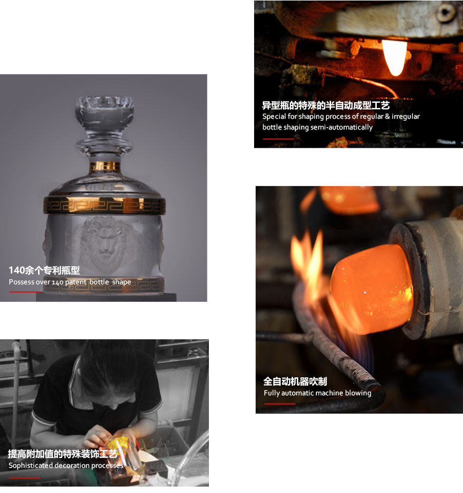 主要与国内五粮液、水井坊、西凤、剑南春、郎酒,国外伏特加、威士忌、白兰地、朗姆等名酒企业配套晶质玻璃酒瓶,产品远销美国、英国、法国、俄罗斯、欧美等多个国家和地区。